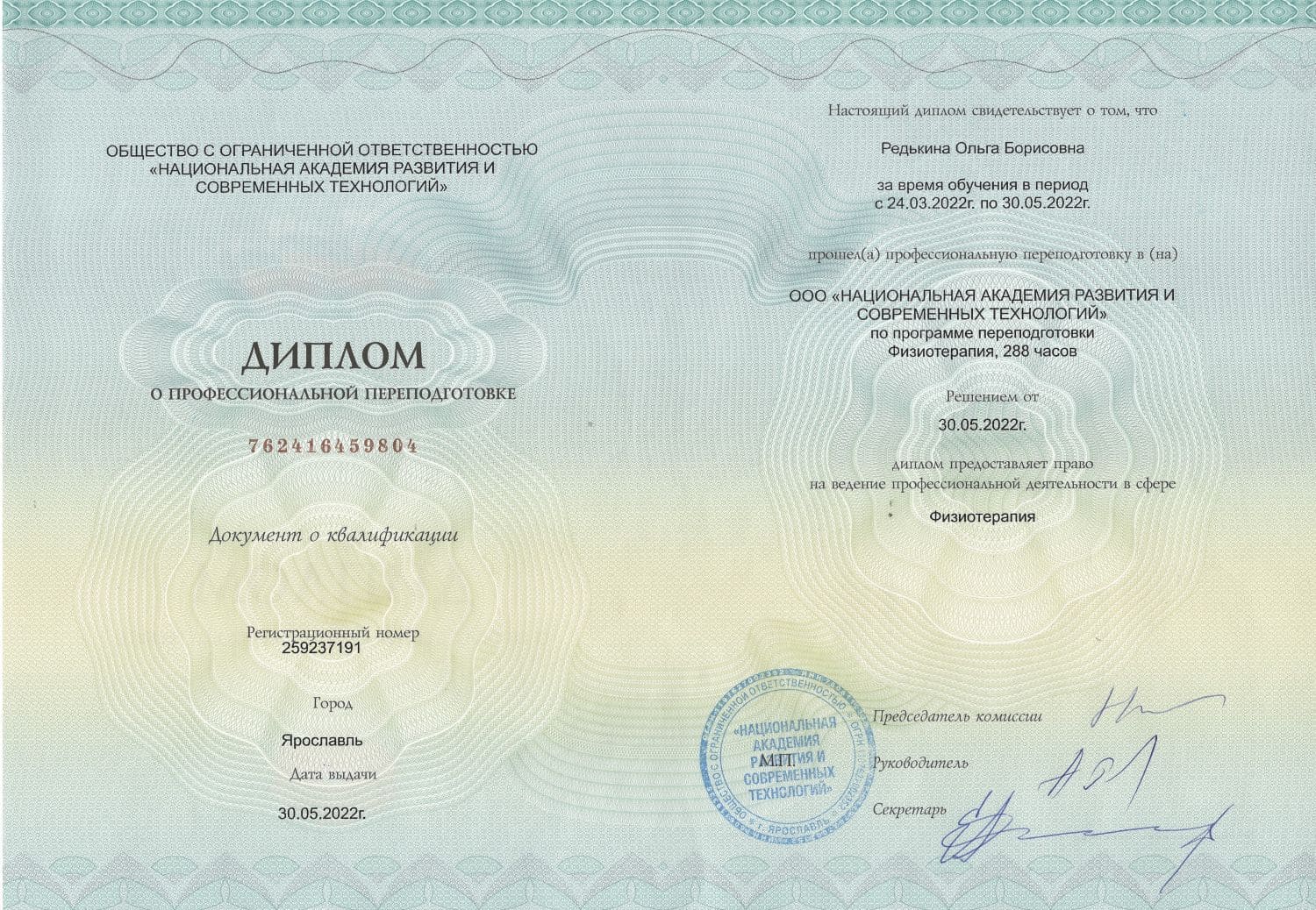 - Диплом о профессиональной переподготовке