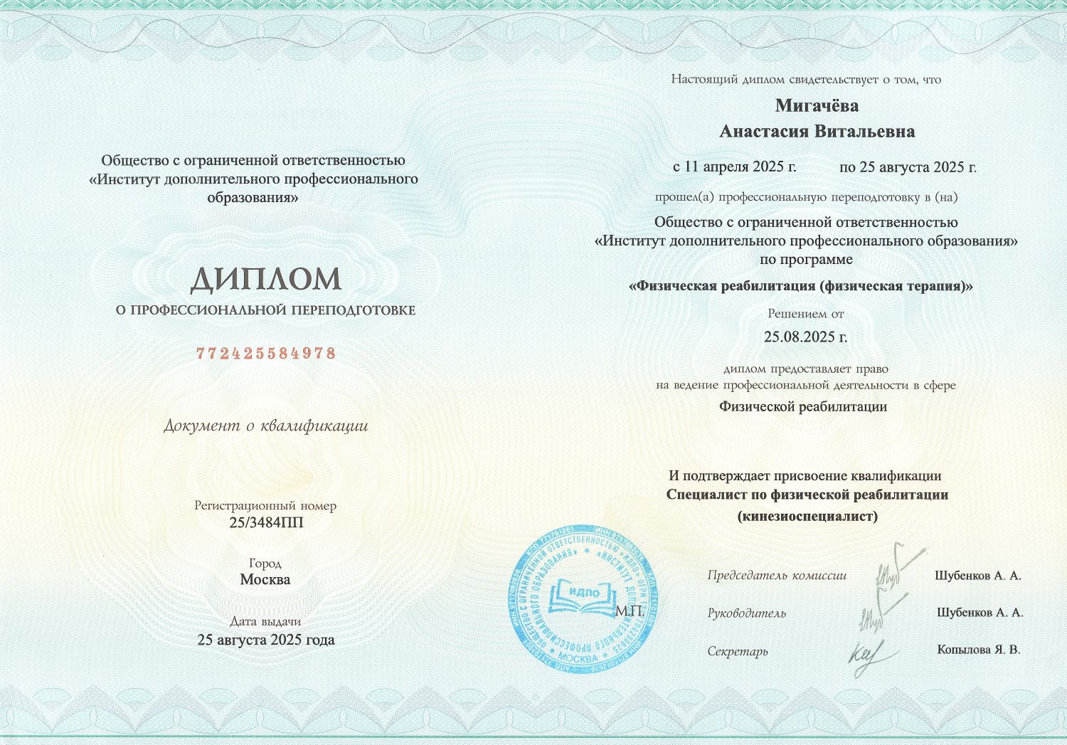 Физиотерапевт, врач лечебной физкультуры, инструктор по лечебной физкультуре